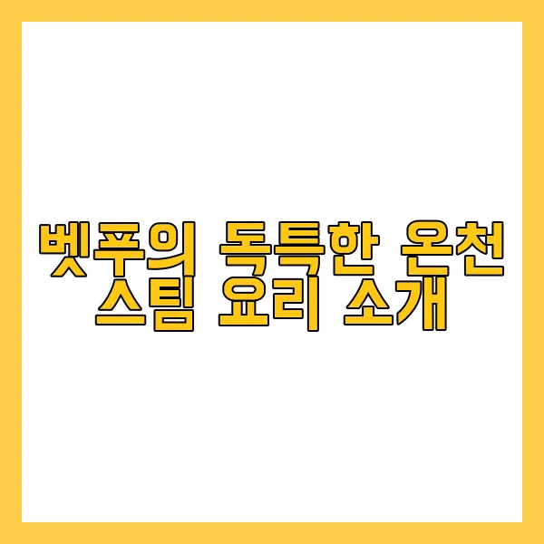 또한 벳푸의 마을 곳곳에서 만날 수 있는 '온천 요리 전문점'에서는 다양한 스팀 요리를 쉽게 접할 수 있습니다. 눈에 띄는 메뉴로는 '지옥찜 세트'가 있는데, 이는 여러 종류의 해산물과 신선한 채소가 포함되어 있습니다. 이렇게 조리된 식사는 비타민, 미네랄이 풍부하여 건강한 다이어트를 원하는 분들에게 추천됩니다. 다양하게 변형된 지옥찜 요리를 통해 식도락의 즐거움을 극대화할 수 있습니다. 🍽️