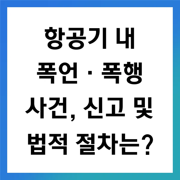 항공기 내 폭언·폭행 사건 은 승객과 승무원의 안전을 위협하는 심각한 문제 입니다. 이러한 상황에 처했을 때 적절히 대응 하고 공식 절차에 따라 신고 하는 것이 중요합니다. 발생한 사건은 보다 안전한 비행 환경을 구축하기 위한 계기 가 되어야 할 것입니다. 피해자에게도 법적 권리를 통해 적절한 보호와 보상을 받을 수 있는 길이 열려 있습니다. 이러한 사례를 통해 항공보안의 중요성 이 더욱 강조되며, 모든 승객과 승무원이 안전하고 쾌적한 비행을 즐길 수 있도록 지속적인 관심과 노력이 요구됩니다.