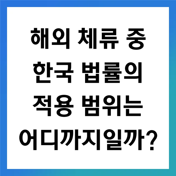 해외에서의 한국 법률 적용 은 다양하고 복잡한 요소 를 포함합니다. 일반 사법 과 국제사법 은 서로 다른 방식으로 작용하며, 상황에 따라 맞춤형 접근 이 필요합니다. 한국인 은 해외 거주 시 법적 의무와 권리 를 이해하고, 체류국과 한국 간의 법률 관계 를 명확히 하는 것이 중요합니다. 여러 분야에서 어떻게 법이 적용되는지를 이해함으로써, 불필요한 법적 문제를 피할 수 있으며, 이는 안심할 수 있는 해외 생활에 필수적입니다. 전문가의 조언을 통해 법적 안정성을 확보하는 것 이 현명한 선택입니다.