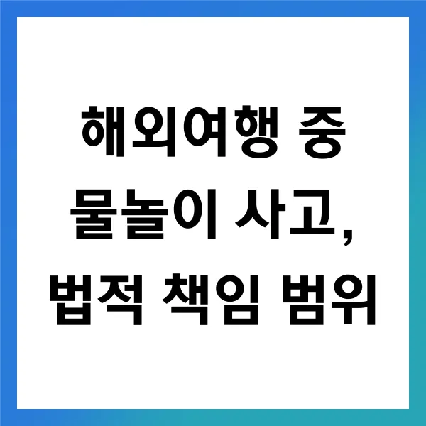 해외에서 물놀이 사고가 발생했을 때, 법적 책임은 국가별로 상이하며 각기 다른 영향을 미칩니다. 이러한 다양성은 사고 발생 시 책임의 범위와 법적 대응에 있어 복잡성 을 추가합니다. 따라서 여행 전 각 국가의 관련 법률 을 철저히 이해하고, 사고 예방을 위한 조치 를 적극적으로 취하는 것이 중요합니다. 법적 대비책이 준비되었더라도 개인의 안전을 최우선으로 하는 실질적 예방 이 무엇보다도 필요합니다. 해외여행을 계획하고 있다면, 법률적 이해와 예방책은 안전한 여행의 필수적인 요소 입니다. 안전하고 즐거운 여행 만큼 중요한 것은 없습니다.