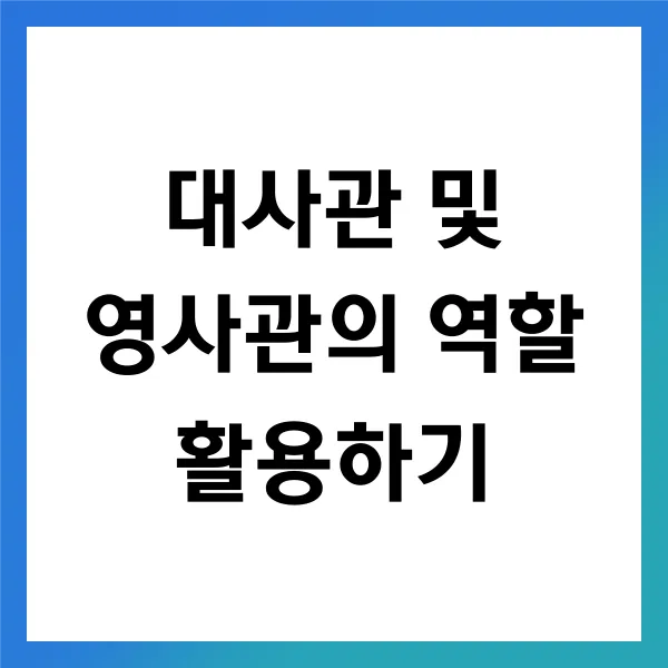 ☝️ 대사관 및 영사관은 외교적 보호의 역할 도 가집니다. 비자 문제로 인해 법적 분쟁이 일어날 경우, 해당 기관의 도움을 받아 변호사를 찾거나 법률 자문을 받을 수 있습니다. 이는 개인이 외국에서 법적 문제에 직면했을 때 큰 지지를 제공합니다 .