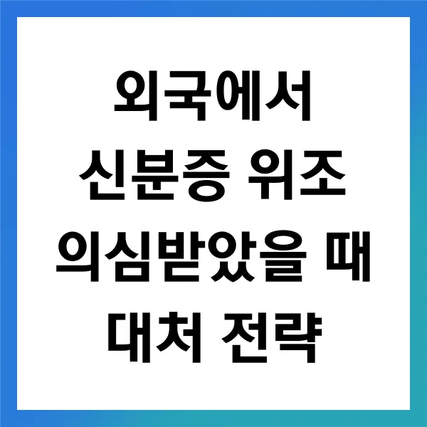 외국에서 신분증 위조 의심 을 받는 상황은 누구에게나 당혹스러울 수 있습니다. 그러나 이럴 때야말로 가장 중요한 것은 상황을 냉철하게 파악하고 침착함을 유지하는 것 입니다. 의심받는 상황에서의 대처는 법적 문제를 방지하기 위한 첫 번째 디딤돌 입니다.