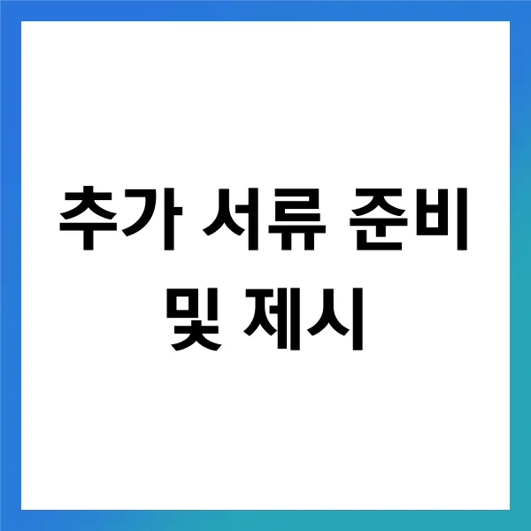 마지막으로, 추가 서류 준비는 종합적이고 체계적인 접근 을 필요로 합니다. 통상적으로 2세트 이상의 복사본을 준비하여 필요 시 추가적으로 제출할 수 있도록 하고, 모든 문서는 정리된 폴더에 깔끔하게 보관하여 신속히 제출 할 수 있도록 하는 것이 좋습니다. 이러한 세심한 준비는 단순한 오해나 잘못된 판단을 방지하는 중요한 방법론 이 될 수 있습니다.