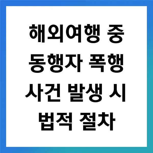 해외여행은 새로운 경험과 즐거움을 선사하지만 , 때때로 예기치 못한 상황이 발생하기도 합니다 . 동행자 폭행 사건은 이러한 불행한 사례 중 하나로 , 여행의 즐거움을 한순간에 앗아갈 수 있습니다. 법적 절차를 이해하는 것은 매우 중요합니다 . 해외에서 발생한 폭행 사건에 대한 대응 방안을 알고 있는 것은 피해자를 보호하고 권리를 지키는 데 필수적입니다 . 본 글에서는 동행자 폭행 사건의 정의와 유형 , 해외에서의 법적 절차, 피해자의 권리와 의무에 대해 자세히 살펴보겠습니다 . 문제 해결을 위한 올바른 정보를 통해 안전한 여행을 기원합니다 .