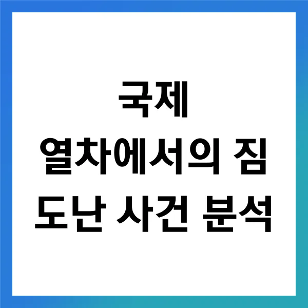 짐 도난의 주요 원인은 주로 이동 중의 부주의와 안전장치의 미비 로 분석됩니다. 많은 여행자들이 짐을 열차의 수하물 보관 공간에 두고 자리를 비우는 경우가 많은데, 이 과정에서 적절한 주의를 기울이지 않으면 쉽게 도난당할 수 있습니다. 특히 사람들이 많이 붐비는 구간이나 기차역에서 발생하는 경우가 빈번합니다. 연구 결과에 따르면, 짐 도난 사건의 60% 이상이 사람이 많이 모이는 장소에서 발생하는 경향이 있으며, 이는 여행자들이 자신의 소지품을 소홀히 관리하는 경향 때문입니다.
