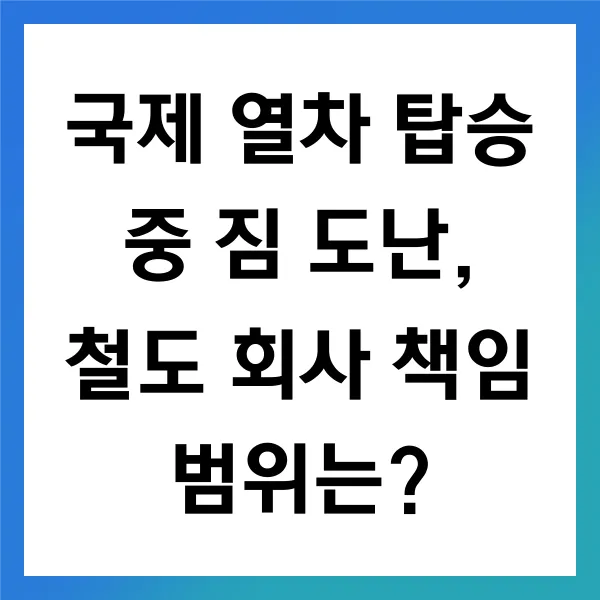국제 열차 탑승 중 짐 도난 사건 은 여행자들에게 큰 불안 요소 로 작용합니다. 많은 이들이 편리함을 추구하여 열차를 이용하지만, 이러한 소중한 자산이 도난당하는 상황 은 언제든지 발생할 수 있습니다. 따라서 철도 회사의 법적 책임 범위를 명확히 이해하는 것 은 필수적입니다 . 법적 보호를 받기 위한 준비가 필요합니다. 또한, 안전 수칙을 숙지하고 도난 피해를 예방할 수 있는 팁 을 알고 있으면 훨씬 더 안전한 여행이 가능합니다. 이러한 정보는 여행자의 안전을 지키는 데 큰 도움이 될 것 입니다.