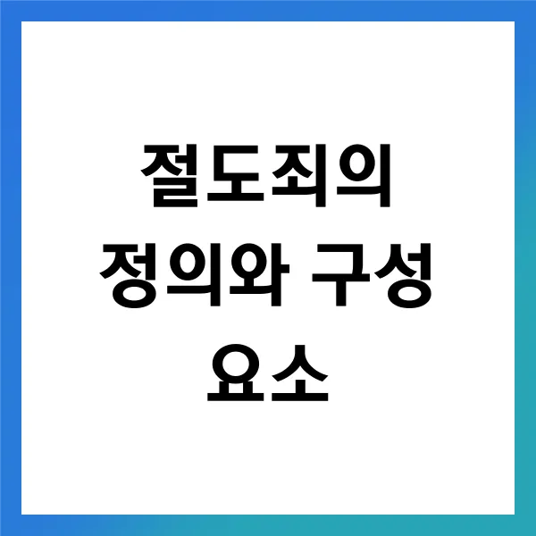 절도죄 는 타인의 재물을 불법적으로 취득하는 행위 를 말하며, 법적으로는 형법 제329조에 규정되어 있습니다. 이 죄는 기본적으로 세 가지 주요 요소로 구성 됩니다: 불법성, 의도, 및 물건의 소유권 침해입니다. 이러한 요소는 절도죄를 구성하는 핵심적인 요인 으로, 각 요소가 충족되지 않으면 절도죄로 인정받지 않을 수 있습니다.