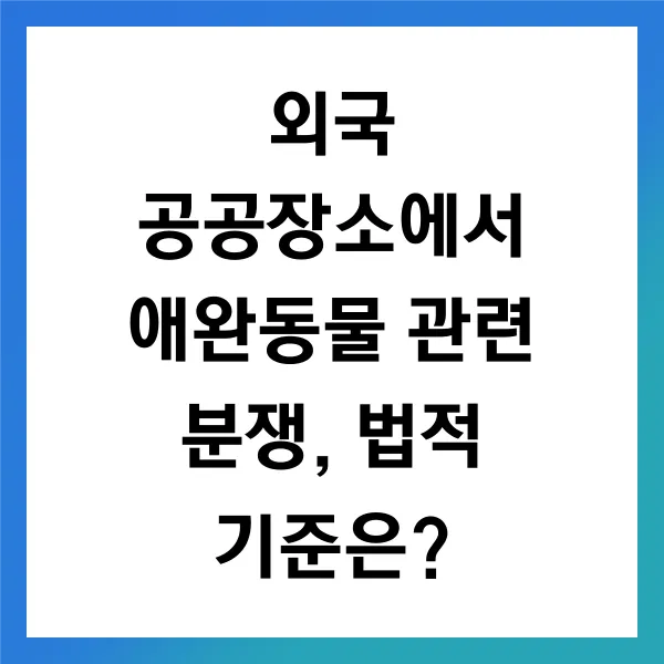 외국 공공장소에서의 애완동물 관련 분쟁은 점점 더 빈번해지고 있습니다. 이에 따라 애완동물 소유자는 자신의 권리와 의무를 명확히 이해 해야 하며, 공공장소에서의 규정을 준수하는 것이 필수입니다. 또한 분쟁 발생 시 적절한 대처 방법을 숙지하고 , 과거의 법적 판례와 사례 분석을 통해 자신의 입장을 강화하는 것이 중요합니다. 이러한 정보를 바탕으로 충실한 애완동물 소유자가 되어 올바른 사회의 일원이 되는 데 기여할 수 있습니다. 결국, 애완동물과 사람 모두가 조화롭게 coexist할 수 있는 환경 조성이 필요합니다.