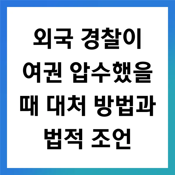 마지막으로, 법적 대처를 위한 준비를 해야 합니다 . 가능한 한 빨리 변호사와 상담하여, 압수된 여권과 관련된 법적 절차를 이해해야 합니다. 이 과정에서 피할 수 있는 상황이나 대처 방법을 미리 알고 있는 것이 큰 도움이 됩니다. 2020년 외국에서 여권 압수 사건의 75%는 법적 대응이 필요한 경우가 많았다는 통계를 참고하면, 법적 지원의 중요성이 더욱 부각됩니다 .