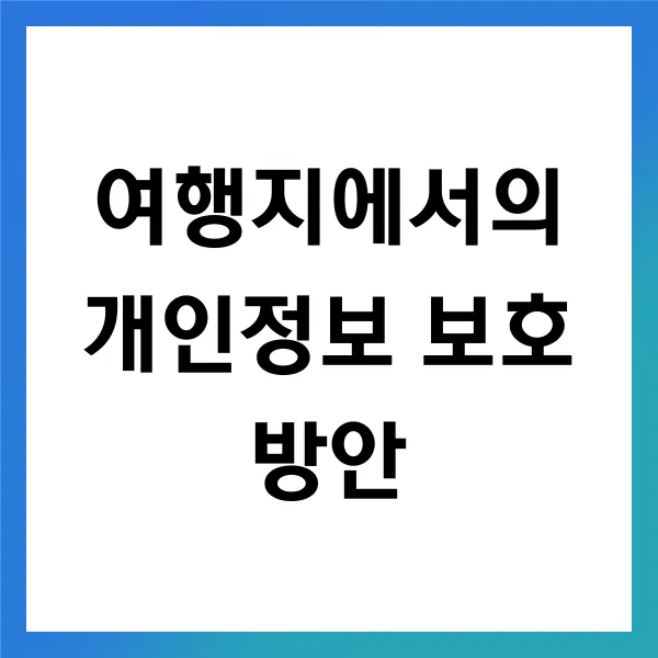 이러한 여러 방안을 통해 여행지에서도 개인정보를 최대한 안전하게 보호 할 수 있습니다. 개인 정보는 무형의 자산인 만큼, 이를 소중히 여기는 태도 가 필요합니다. 미래의 여행도 안전하고 즐거울 수 있도록, 지금 바로 개인정보 보호에 힘써야 할 때입니다 .