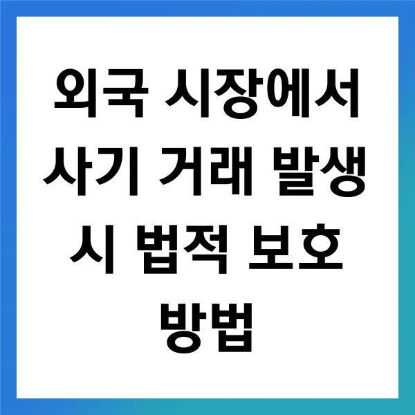 외국 시장에서 사기 거래가 발생했을 때 , 법적 보호의 중요성은 더욱 부각됩니다. 국가마다 법률과 규제가 상이하기 때문에, 사기 거래의 정의와 유형을 명확히 이해하는 것 이 필수적입니다. 각국의 법적 절차와 필요한 서류를 숙지함으로써 , 피해를 최소화할 수 있습니다. 또한, 예방을 위한 구체적인 팁을 통해 사기 거래의 위험을 줄일 수 있는 방법도 모색할 필요가 있습니다. 이를 통해 법적 보호를 더욱 강화할 수 있습니다.